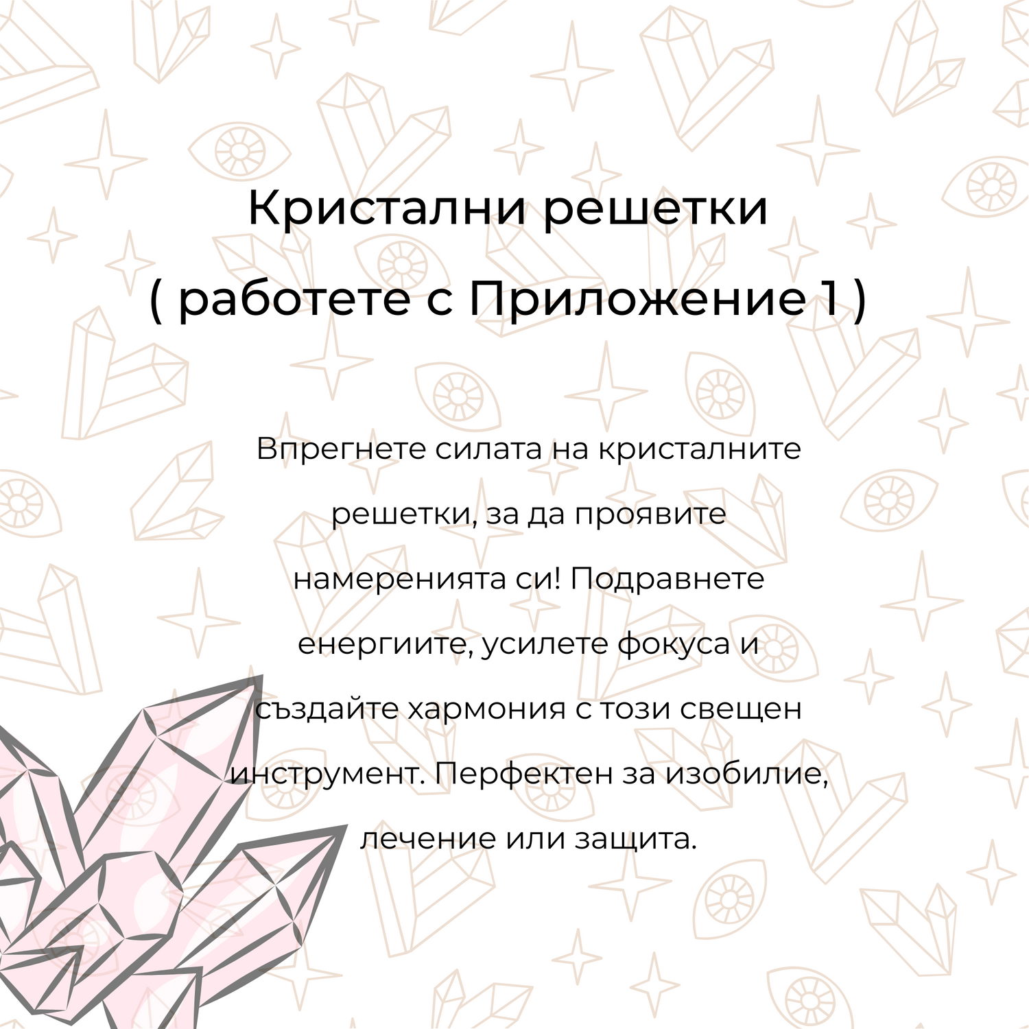 за работа с кристали и ритуали за баланс и яснота.